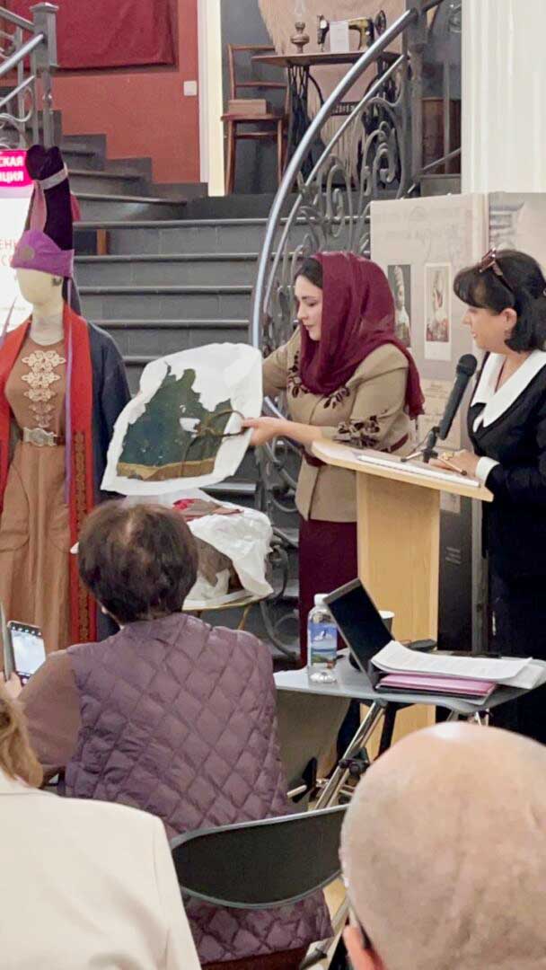 Ç.E. Akhriev İnguş Araştırma Enstitüsü’nde araştırma görevlisi olan sanat tarihçisi Tanzila Dzaurova, Tsori mimari kompleksinin mahzeninde bulunan malzemeleri örnek olarak kullanarak “16.-18. Yüzyıllarda İnguş Kadın Kostümleri: Tsori Mimari Kompleksi 6 No’lu Yeraltı Mezarından Örnekler” başlıklı bir sunum yaptı.