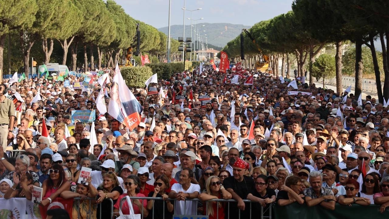 48 köyün yaşam alanlarını tehdit eden ve zeytinlikleri madencilik faaliyetlerine açan yasaya karşı çıkan yaşam savunucuları ve köylüler, “Toprağımızı Vermiyoruz Platformu”nun çağrısıyla 28 Eylül’de Muğla’nın Menteşe ilçesinde miting düzenledi.