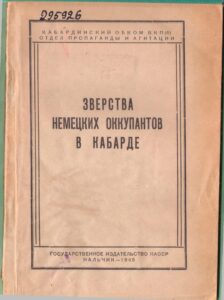 1945 yılında Nalçik’te yayımlanan bu koleksiyon, Kabardey Cumhuriyeti’nin kısmi işgali döneminde Almanların işlediği zulümleri anlatan materyaller içermektedir. Bu materyaller arasında, yoldaşlar Yevgazhukov, Kabaloev ve Tsavkilov’un Novo-İvanovka ve Baksan bölgesinin köylerinde Nazilerin işlediği zulümler hakkında 1942 yazına ve sonbaharına ait makaleleri yer almaktadır. Bu koleksiyonu oluşturan, cumhuriyetin çeşitli bölgelerinde Almanların işlediği zulümleri anlatan makaleler, hikâyeler ve eylemler gibi materyallerin çoğu, 1943-1944 yıllarında, yani cumhuriyetin Alman işgalcilerden kurtarılmasından sonra “Kabardinskaya Pravda” gazetesinde yayımlanmıştır.