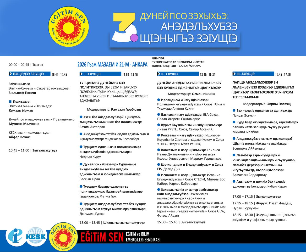 Kuban Kural’ın “Çerkesler Bağlamında Çokdilli Eğitimin İmkânları” başlıklı sunumu yapacağı sempozyumun broşürleri Abazaca ve Adigeceye de çevrildi.