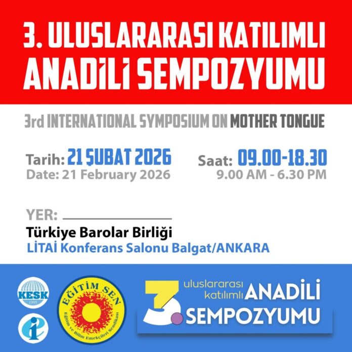 Kamu Emekçileri Sendikası Konfederasyonu’na (KESK) bağlı Eğitim Sen Genel Merkezi’nin düzenlediği 3. Uluslararası Katılımlı Anadili Sempozyumu, 21 Şubat‘ta Ankara’da yapılacak.