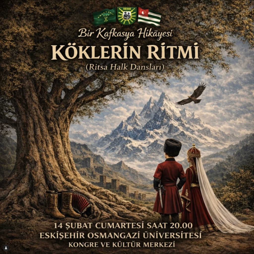 Eskişehir Kuzey Kafkas Kültür ve Dayanışma Derneği’nin halk dansları topluluğu Ritsa tarafından hazırlanan “Bir Kafkasya Hikâyesi: Köklerin Ritmi” adlı gösteri, 14 Şubat Cumartesi günü saat 20.00’de Eskişehir Osmangazi Üniversitesi Kongre ve Kültür Merkezi Salonu’nda sahnelenecek.