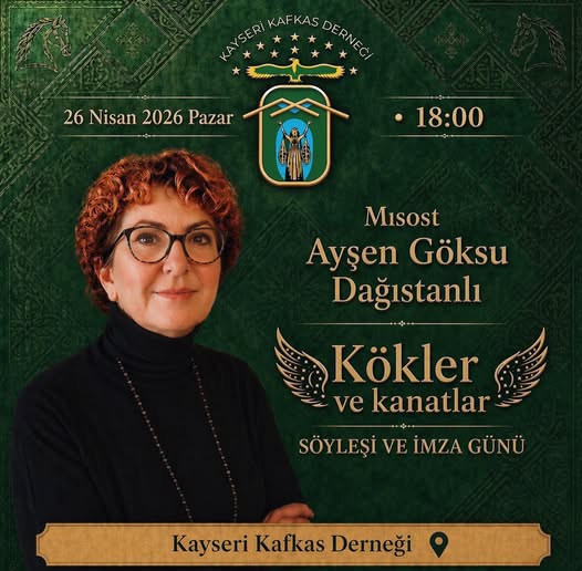 Dağıstanlı, 26 Nisan Pazar günü saat 18.00’de de Kayseri Kafkas Derneği’nin düzenlediği söyleşi ve imza gününde okurlarıyla buluşacak.