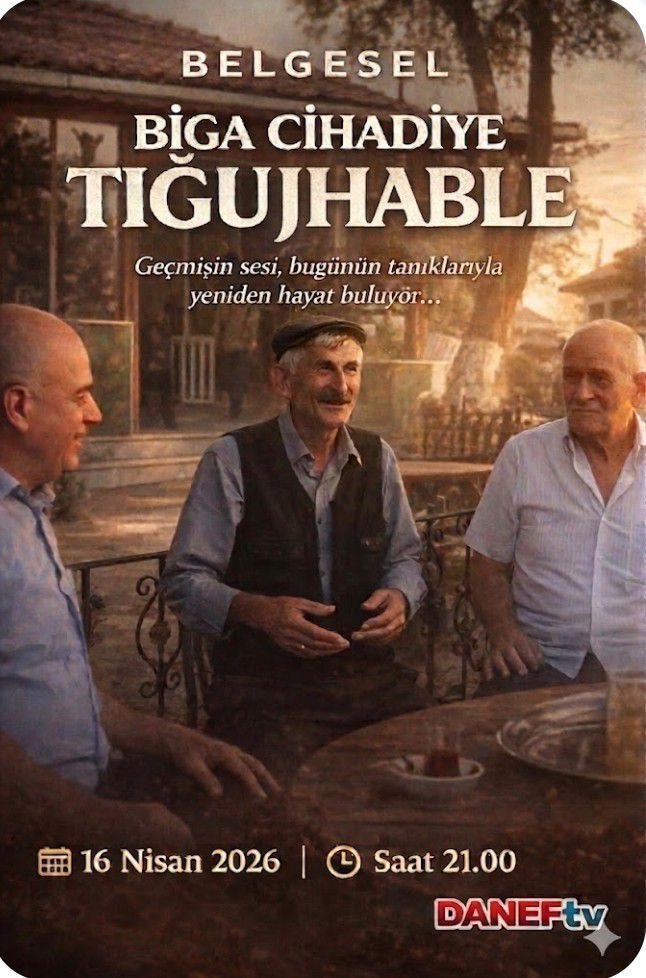 Çevrimiçi yayın yapan Danef TV 16 Nisan’da bir belgesel yayımlayacak. Biga Cihadiye’nin konu edildiği program “Tiğujhable” adını taşıyor. “Geçmişin sesi, bugünün tanıklarıyla yeniden hayat buluyor” sözleriyle tanıtılan belgesel saat 21.00’de.